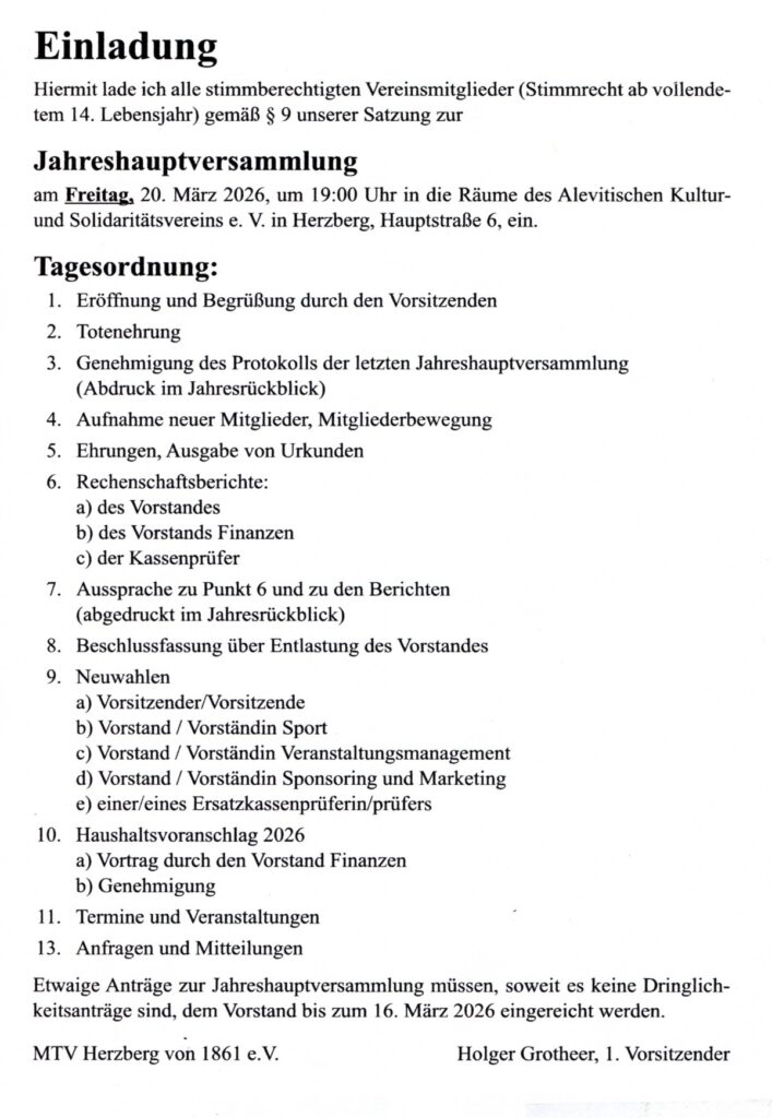Einladung zur Jahreshauptversammlung am 20. März 2026 Einladung zur Jahreshauptversammlung am 20. März 2026