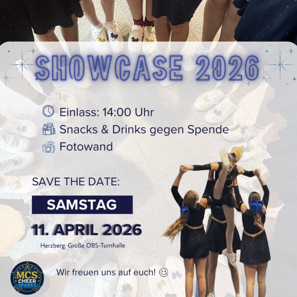 Beim Showcase am 11. April 2026 laden euch die Cheer Sparks ab 14:00 Uhr herzlich ein. Freut euch auf leckeres Essen, erfrischende Getränke, spannende Mitmachaktionen, tolle Gewinnchancen und eine Fotowand für besondere Erinnerungen.